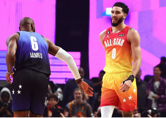 詹尼斯队在 2023 年 NBA 全明星赛中击败勒布朗队,杰森·塔图姆创造得分纪录